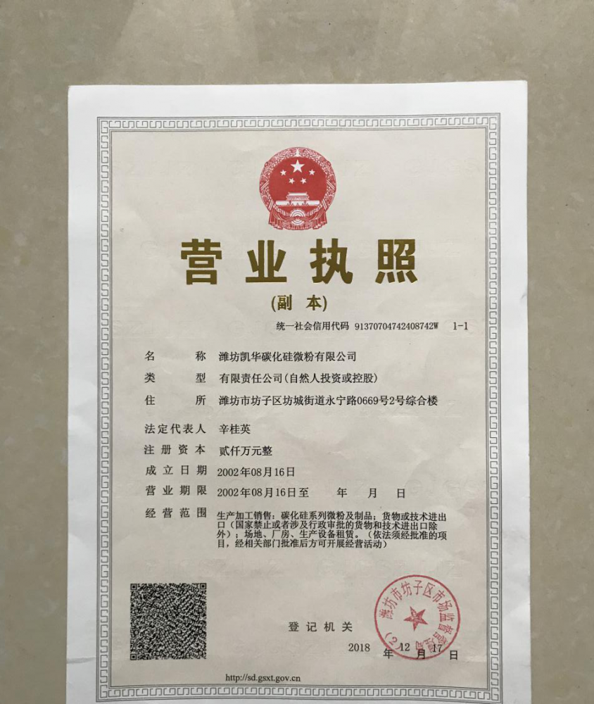 濰坊凱華碳化硅微粉有限公司成立于2002年,國(guó)家高新技術(shù)企業(yè),公司占地40畝,標(biāo)準(zhǔn)廠房19000平方,辦公樓、研發(fā)處2000平方,年生產(chǎn)能力3萬(wàn)噸。一直從事陶瓷級(jí)微粉的生產(chǎn)銷售,所生產(chǎn)的超細(xì)碳化硅微粉具有純度高、粒形好、穩(wěn)定性強(qiáng)等特點(diǎn),主要用于反應(yīng)燒結(jié)、無(wú)壓燒結(jié)、硅碳棒新工藝、重結(jié)晶燒結(jié)、蜂窩陶瓷、機(jī)車制動(dòng)裝置、研磨拋光、金屬防腐表面噴涂、納米隔熱保溫材料等領(lǐng)域。標(biāo)準(zhǔn)產(chǎn)品有:F240、F1200、W40、W28、W20、W14、W10、W7、W5、W3.5、 W2.5、W2、W1.5、W0.5、5S、D3E、100F、RS07、RS100及整形高密度系列綠碳化硅微粉......